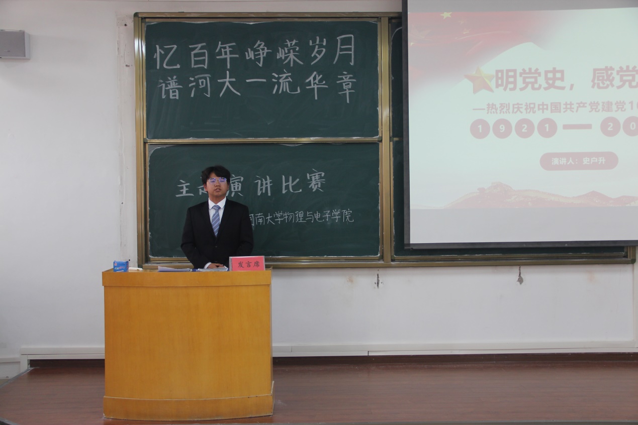 举办以“忆百年峥嵘岁月,谱河大一流华章”为主题的党史校史演讲比赛。