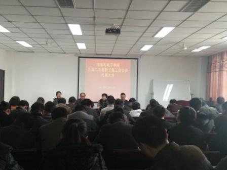 五届二次教职工暨工会会员代表大会在学院B302会议室举行。校工会副主席罗莉、学院全体党政领导和教职工代表参加会议。大会由学院党委书记王宏华主持。