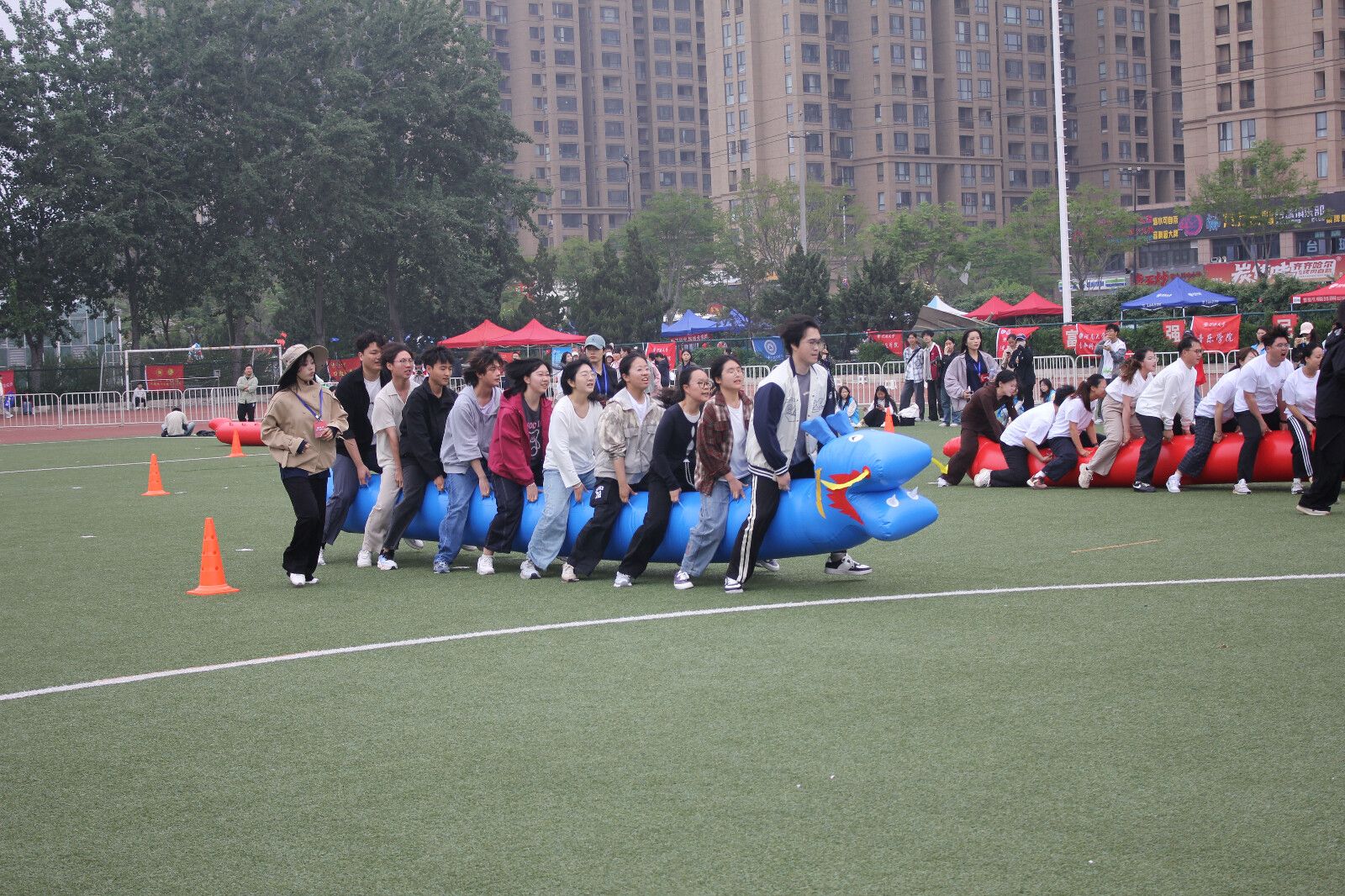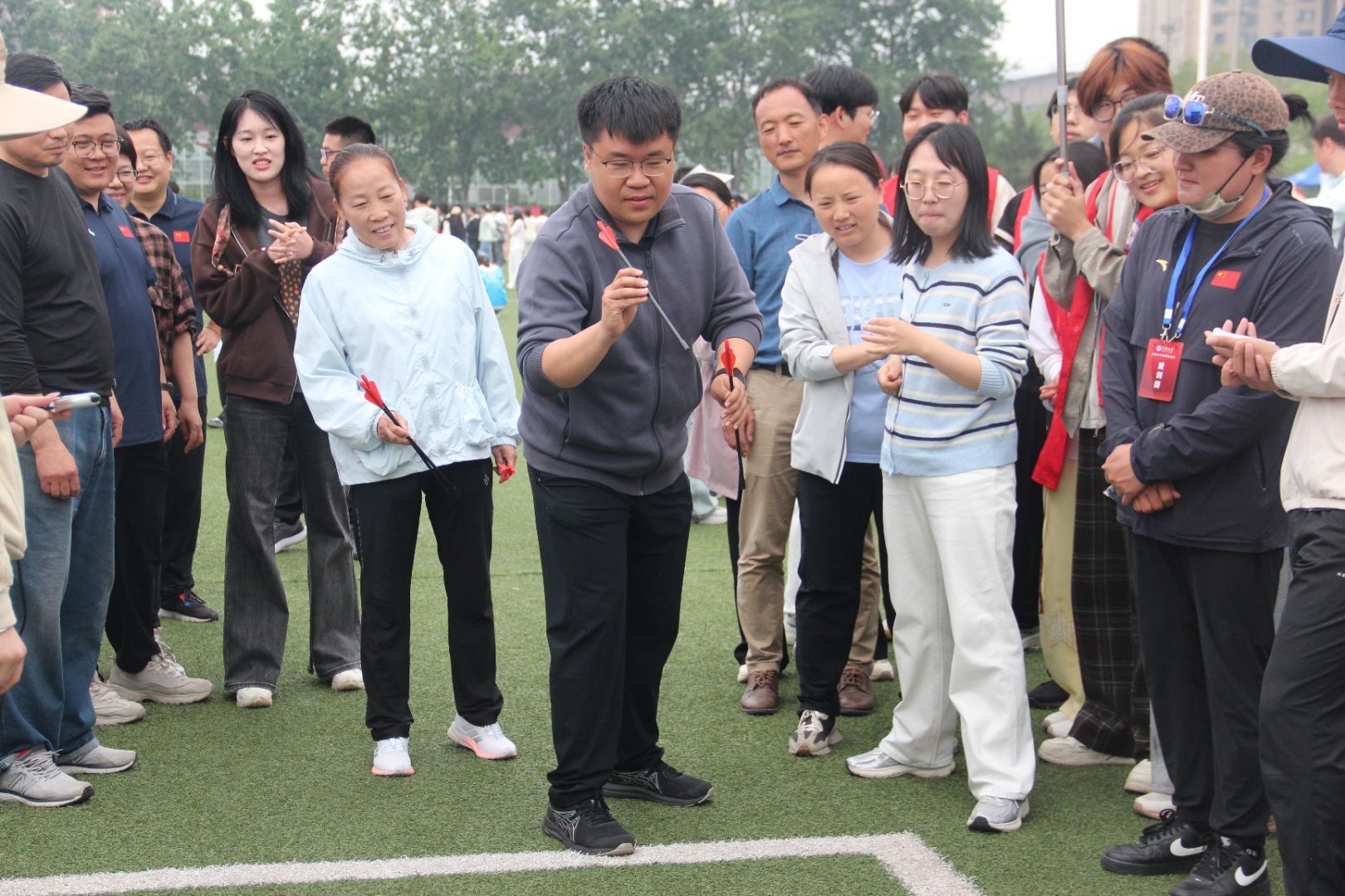 教职工赛场上,老师们褪去讲台上的严谨,化身运动健将,以饱满的热情投身各项赛事。他们奋勇争先、从容应战,不仅展现了乐观向上的精神面貌,更为学生树立了顽强拼搏的榜样。经过激烈比拼,教职工代表队最终夺得“旱地龙舟”第三名、“集体跳绳”第四名、“四人五足”第四名及“飞盘九宫格”第八名。