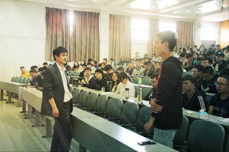 20日上午,在综合楼2406教室,李晓龙以“生活·变化”为主题,给财神捕鱼
